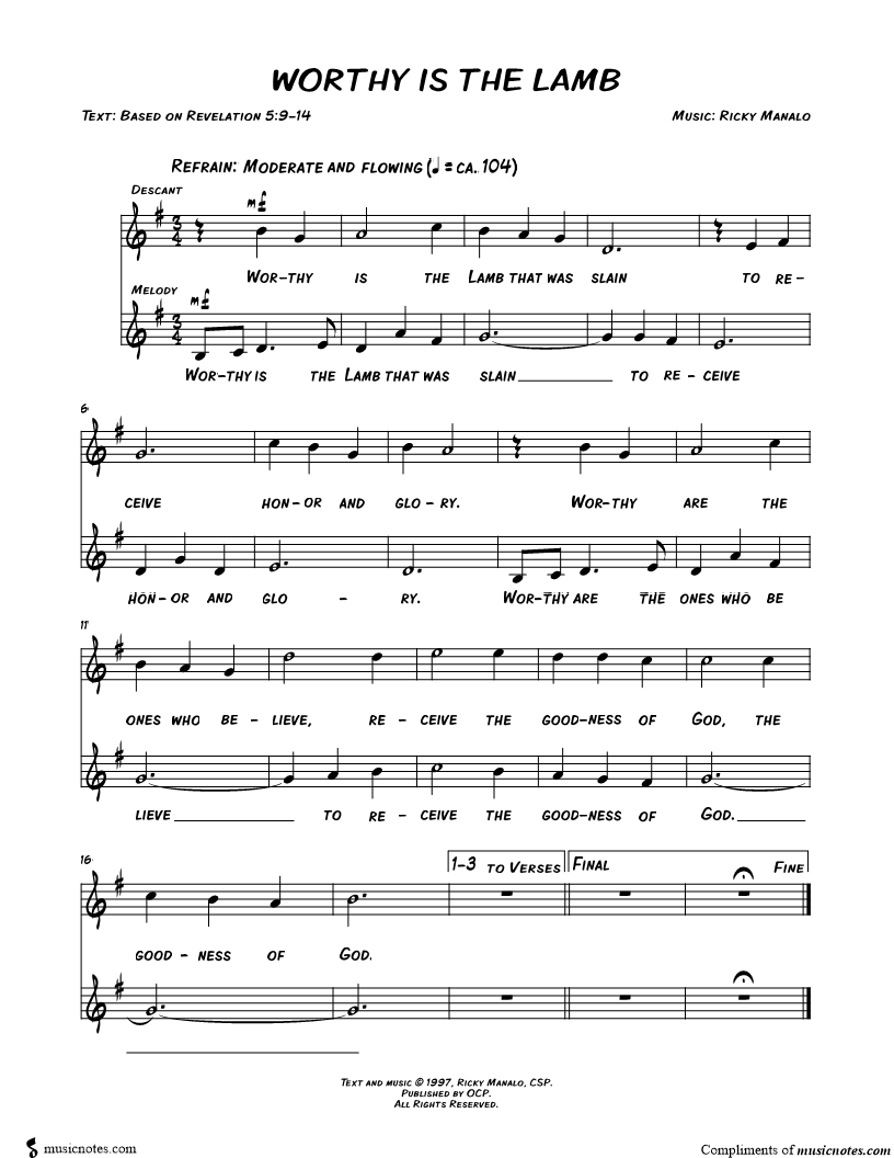 Worthy is the Lamb that was slain to receive honor and glory. |