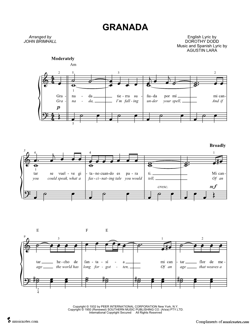 Granada tierra suñada por mí, mi cantar se vuelve gitano cuando es para ti. |