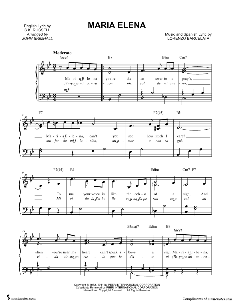 Maria Elena you're the answer to a pray'r, |