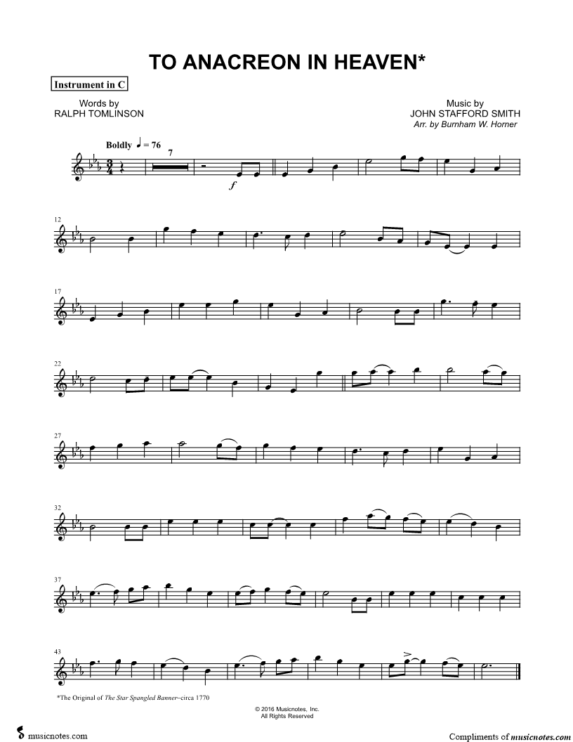 To Anacreon in Heaven - C Instrument |