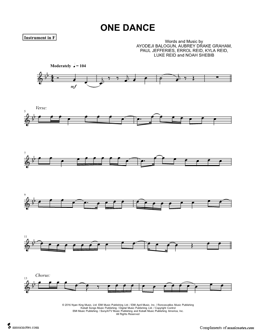 One Dance - F Instrument |