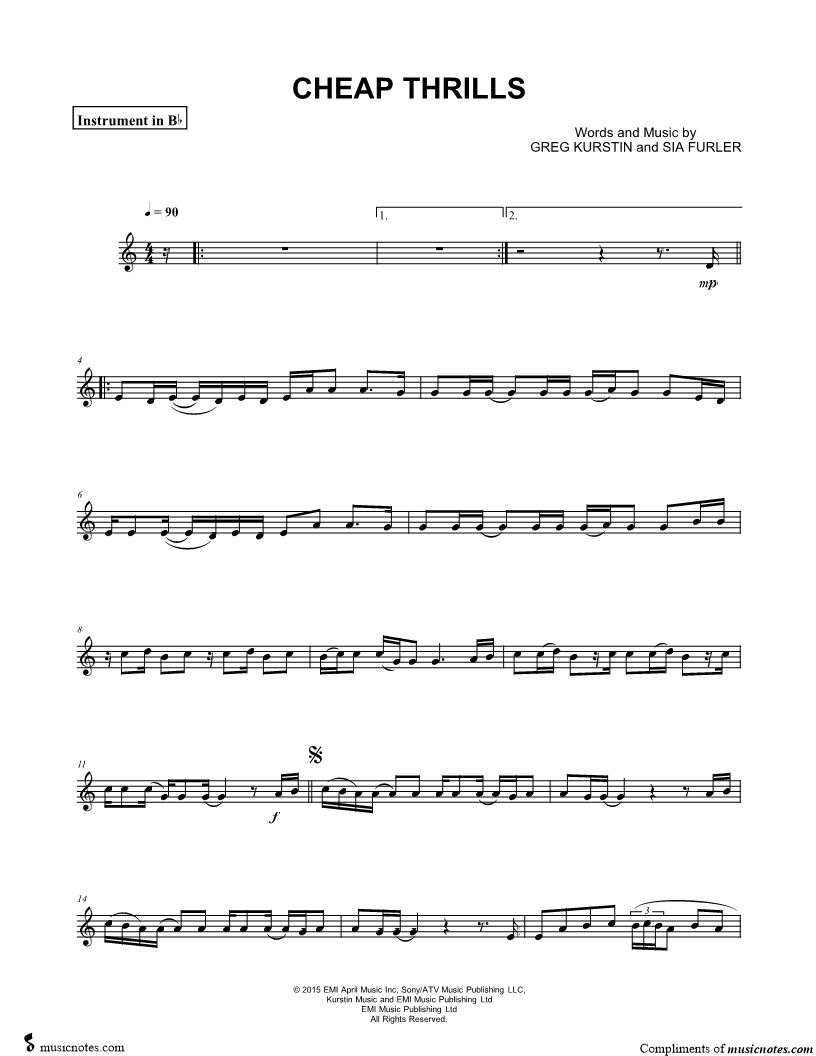 Cheap Thrills - Bb Instrument |