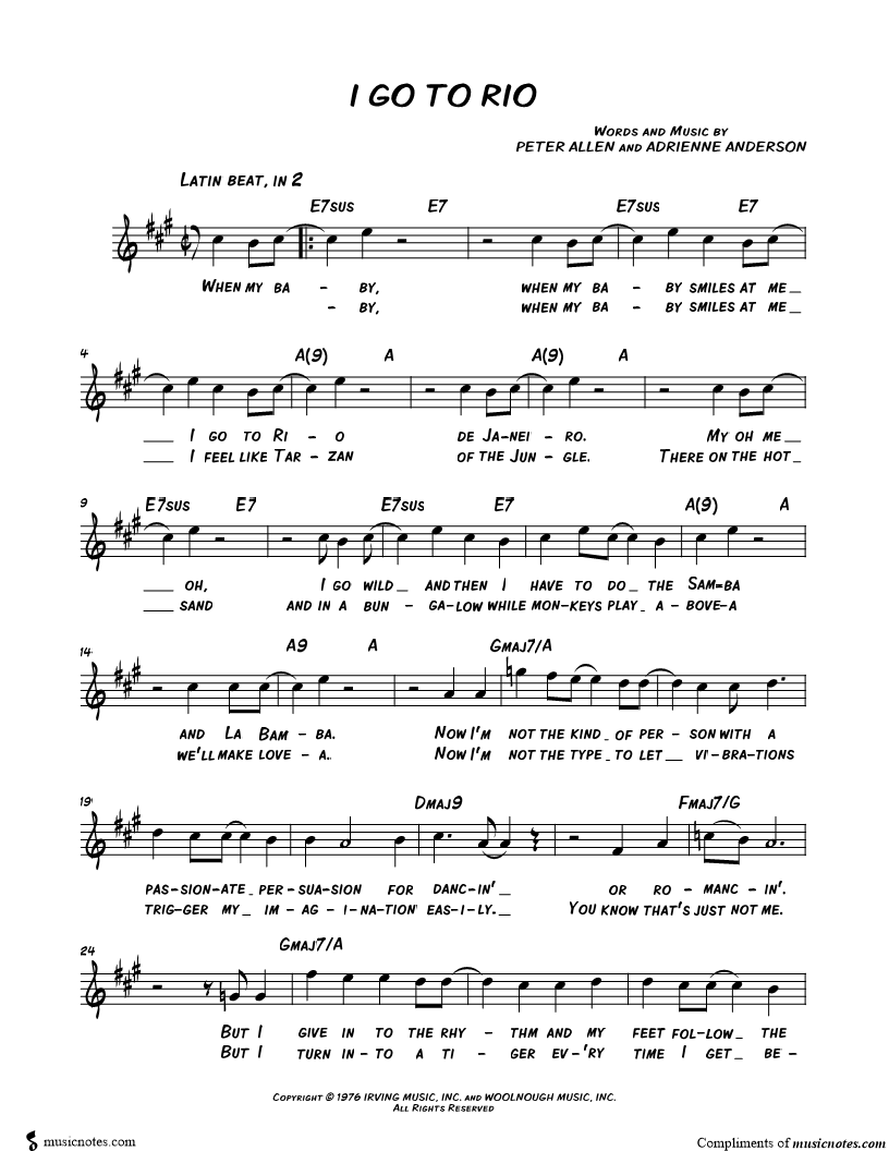 When my baby, when my baby smiles at me I go to Rio de Janeiro. |
