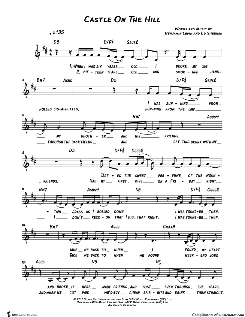 Leadsheets typically only contain the lyrics, chord symbols and melody line of a song and are rarely more than one page in length. Musicians will often use these skeletons to improvise their own arrangements. Leadsheets often do not contain complete lyrics to the song.