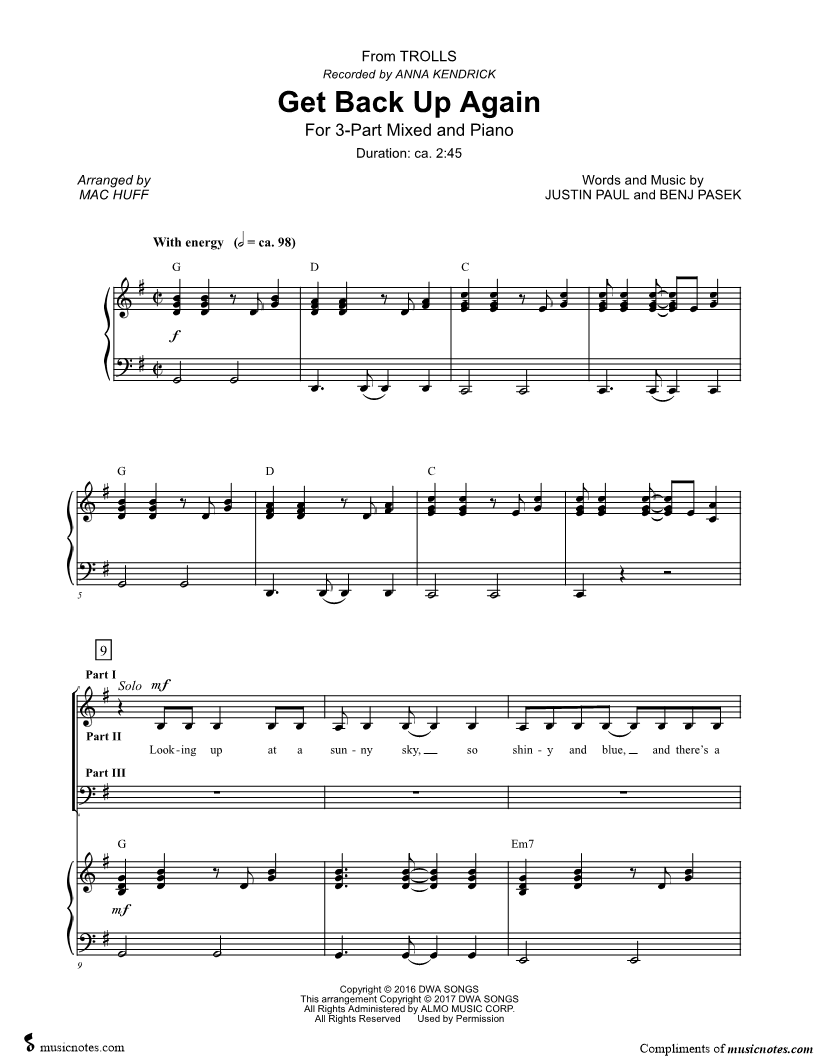 Many of the arrangements on Musicnotes have transpositions available, typically in C Major, as well as 3 sharps and 3 flats. If you do not see your desired key, you can request a transposition by reaching out to Customer Support.