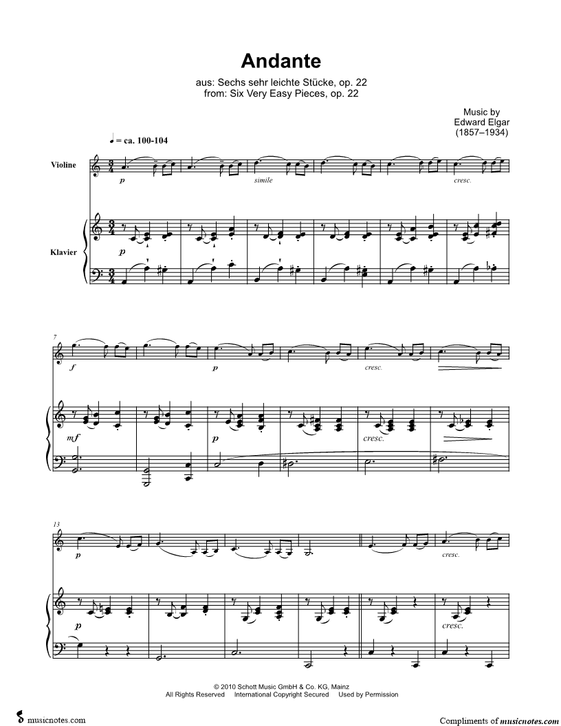 Six Very Easy Pieces, op. 22: Andante - Violin & Piano |