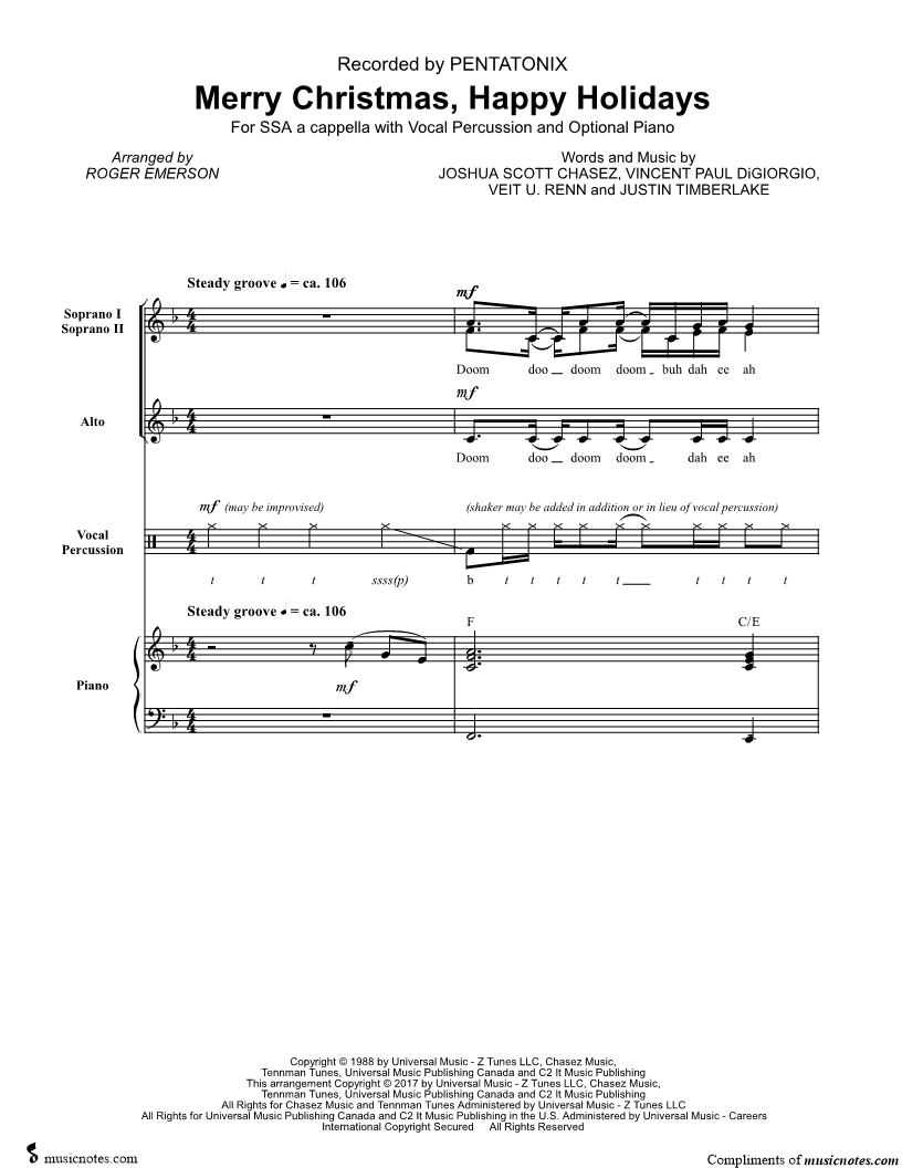 SSA Choir Vocal Percussion Piano Accompaniment | |