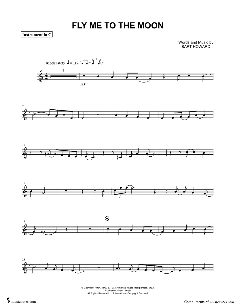 Fly Me to the Moon - C Instrument |