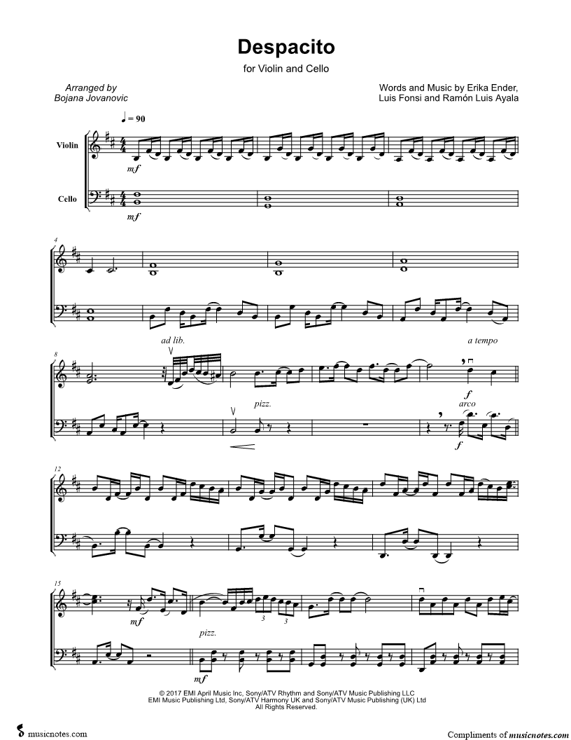 Violin, range: G3-E6 Cello, range: D2-A4 | |