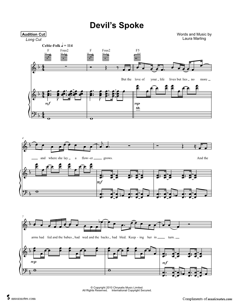 Musicnotes sells a wide variety of digital sheet music products including Singer Pros, Beginner Notes, Choral music, Piano Solos, Lead Sheets, Piano/Vocal/Guitar, Solo and Accompaniment, and fretted instrument tablature.
