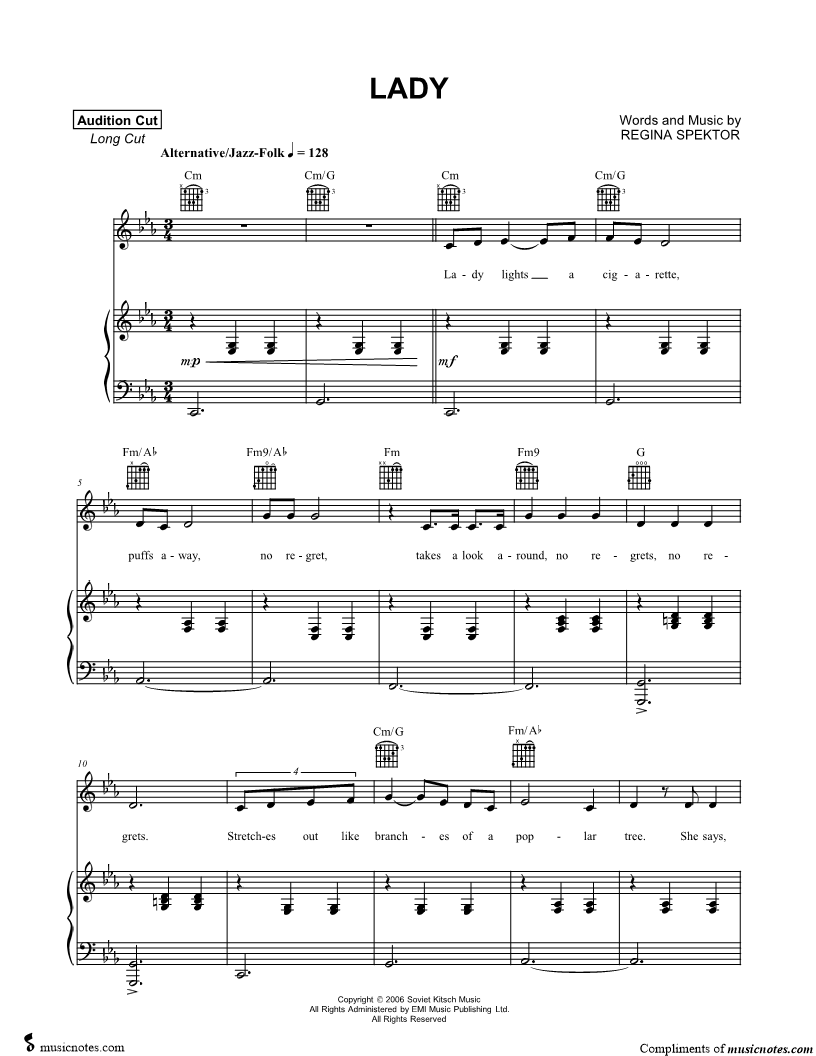Musicnotes sells a wide variety of digital sheet music products including Singer Pros, Beginner Notes, Choral music, Piano Solos, Lead Sheets, Piano/Vocal/Guitar, Solo and Accompaniment, and fretted instrument tablature.
