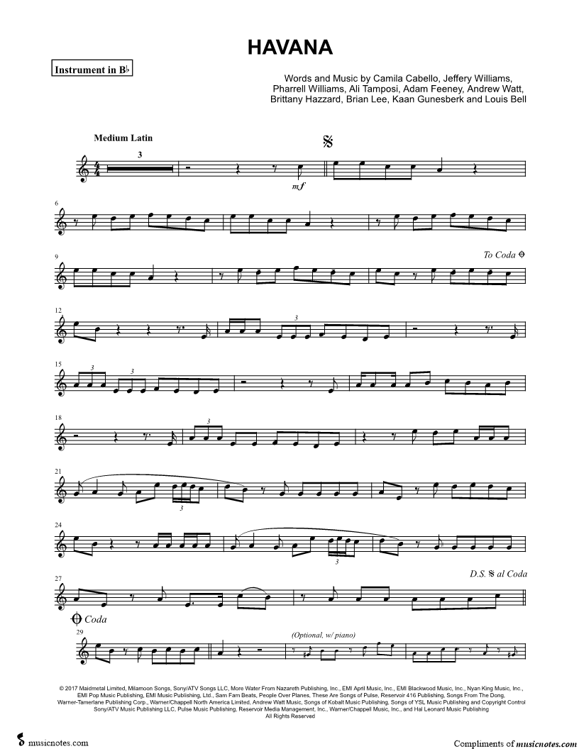Bb Instrument, range: D4-A5 (Tenor Saxophone, Trumpet, Clarinet or Soprano Saxophone) | |