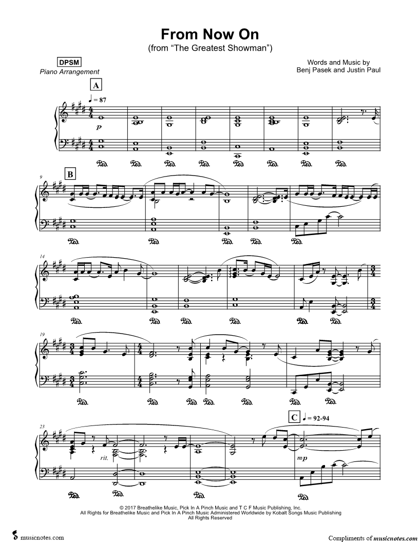 Many of the arrangements on Musicnotes have transpositions available, typically in C Major, as well as 3 sharps and 3 flats. If you do not see your desired key, you can request a transposition by reaching out to Customer Support.