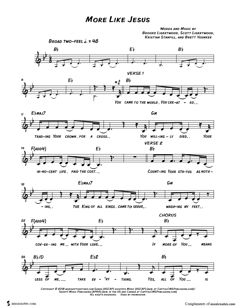 Many of the arrangements on Musicnotes have transpositions available, typically in C Major, as well as 3 sharps and 3 flats. If you do not see your desired key, you can request a transposition by reaching out to Customer Support.