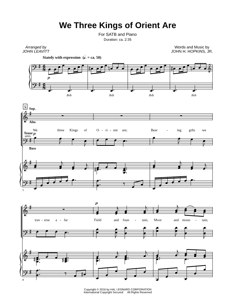 We three Kings of Orient are; bearing gifts we traverse afar |