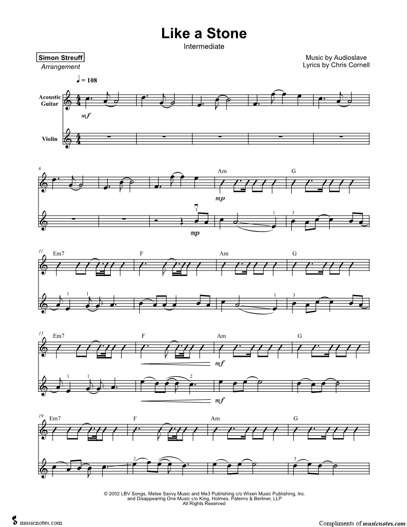 Acoustic Guitar or Guitar Violin, range: A3-D6 | |