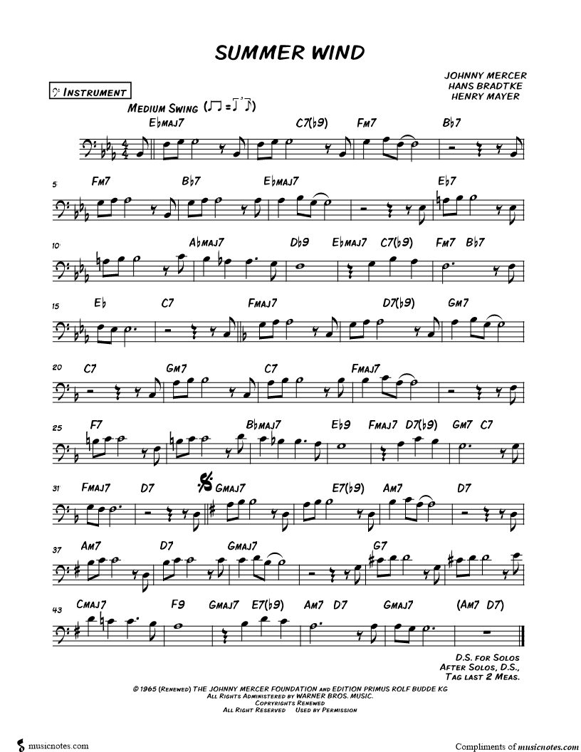 Summer Wind - Bass Clef Instrument |