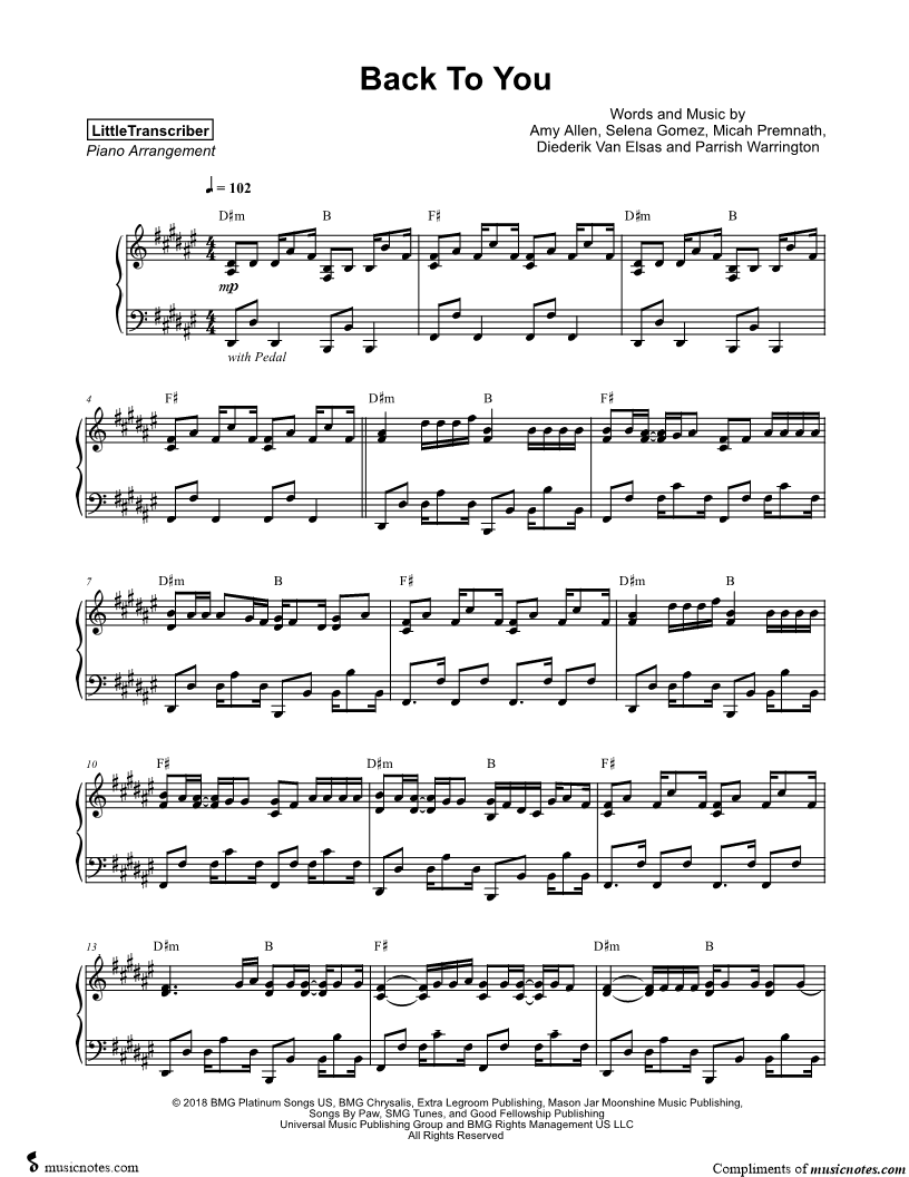 Many of the arrangements on Musicnotes have transpositions available, typically in C Major, as well as 3 sharps and 3 flats. If you do not see your desired key, you can request a transposition by reaching out to Customer Support.