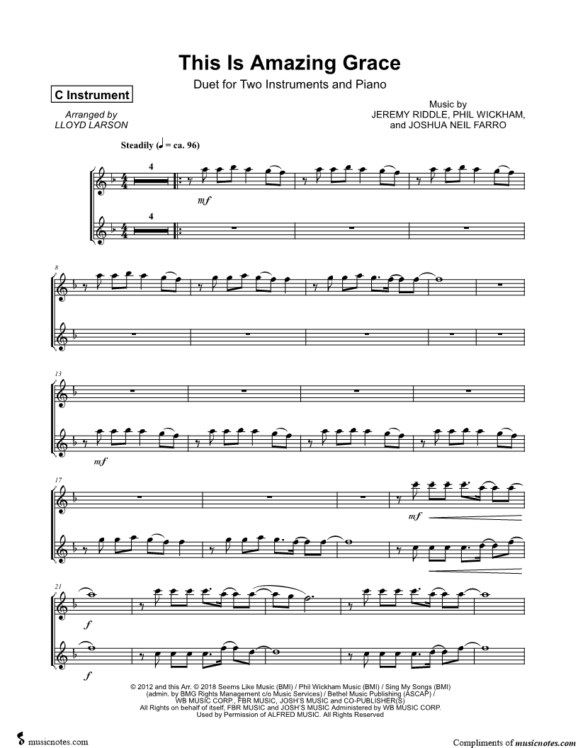 This Is Amazing Grace - C Instrument Duet |