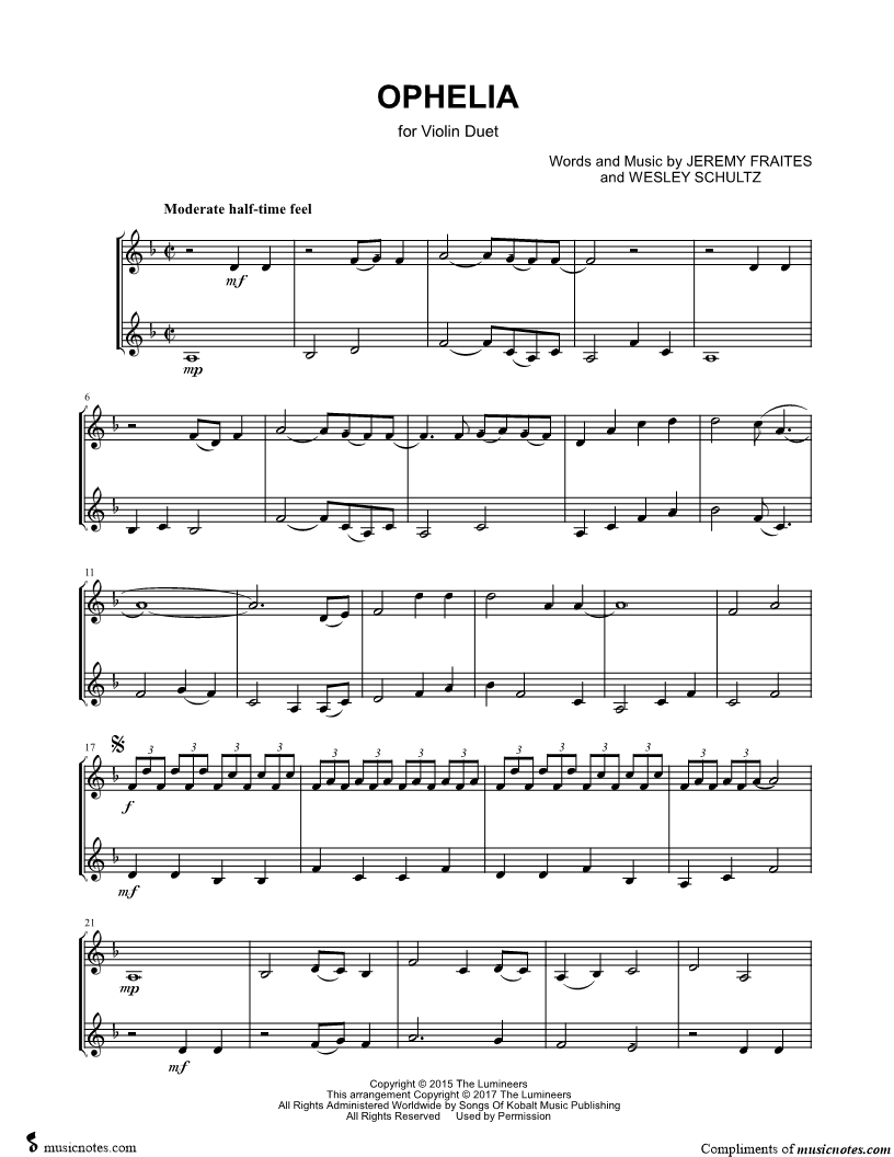 Violin 1, range: A3-A5 Violin 2, range: G3-D5 | |