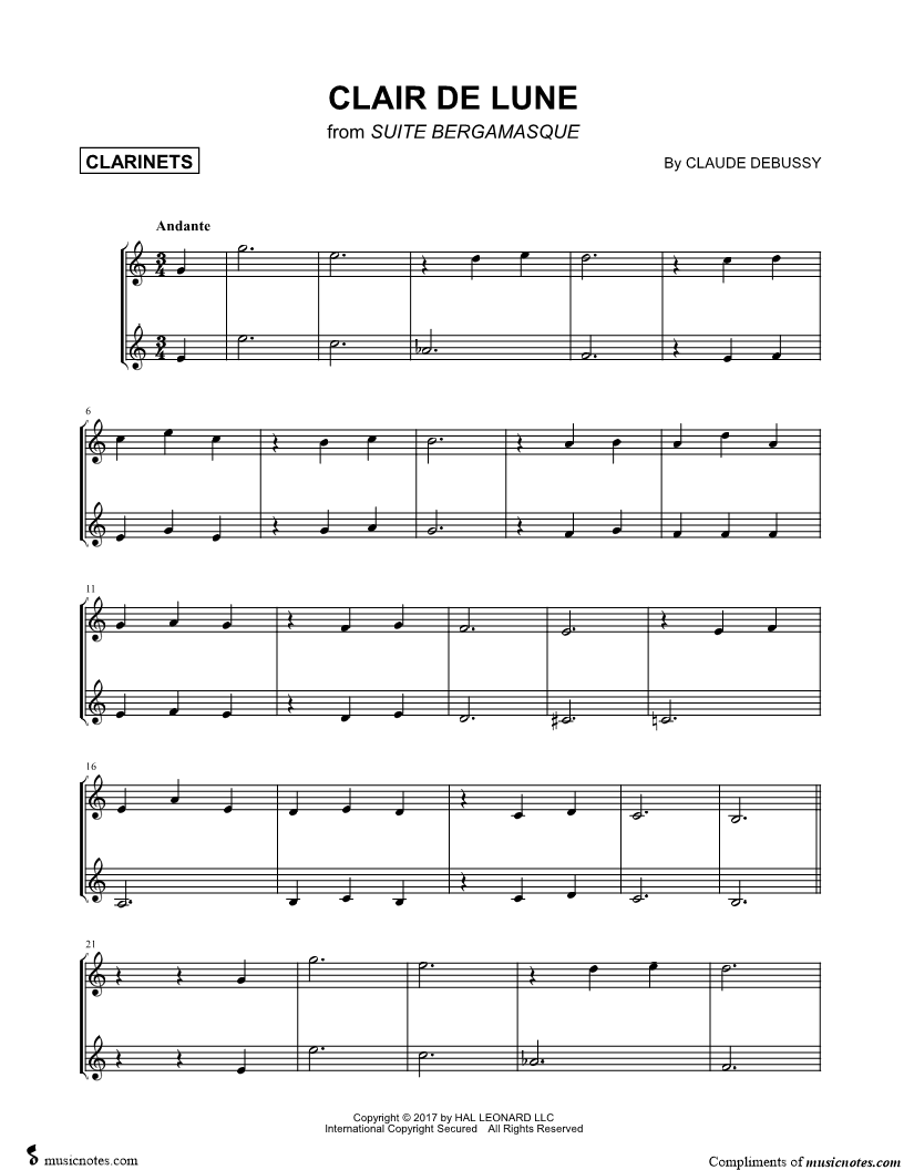 Clair de lune - Clarinet Duet |