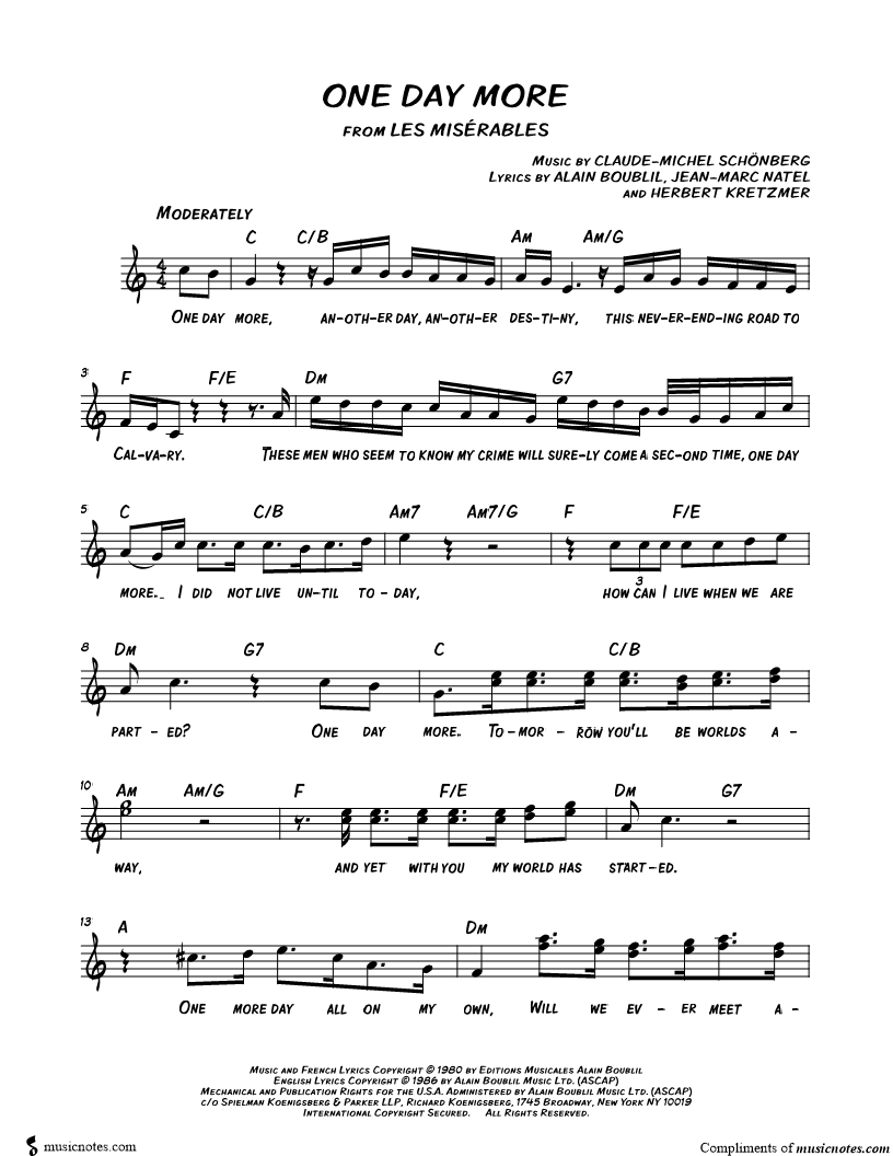 One day more, another day, another destiny, this neverending road to Calvary. |