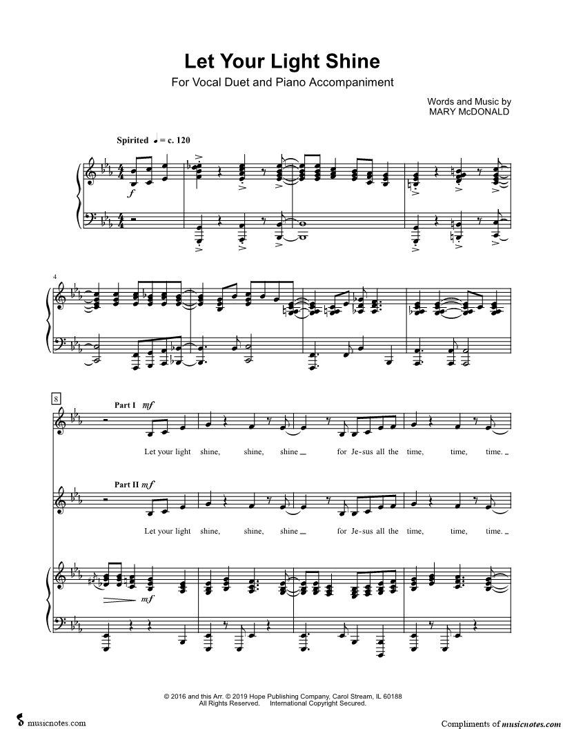 Let your light shine, shine, shine for Jesus all the time, time, time. |