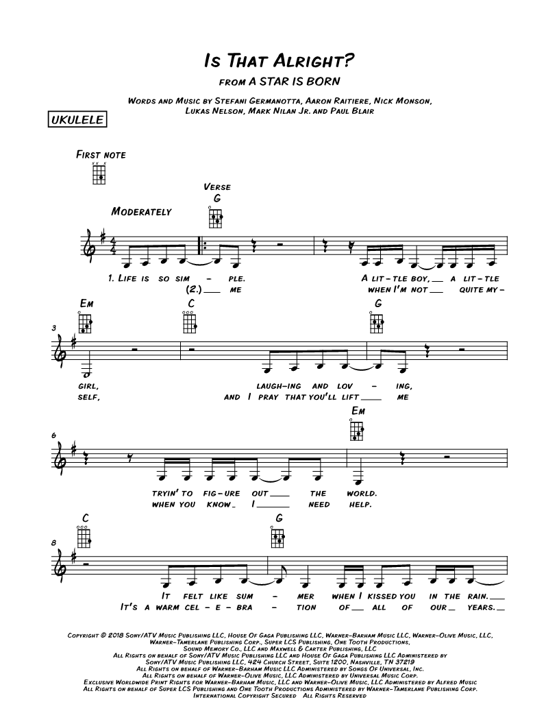 Ukulele/Vocal/Chords Leadsheet |