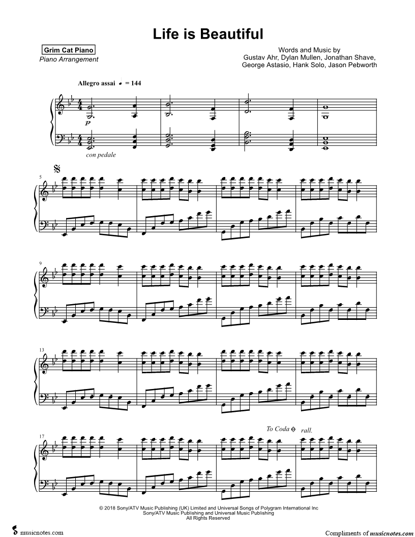 Many of the arrangements on Musicnotes have transpositions available, typically in C Major, as well as 3 sharps and 3 flats. If you do not see your desired key, you can request a transposition by reaching out to Customer Support.