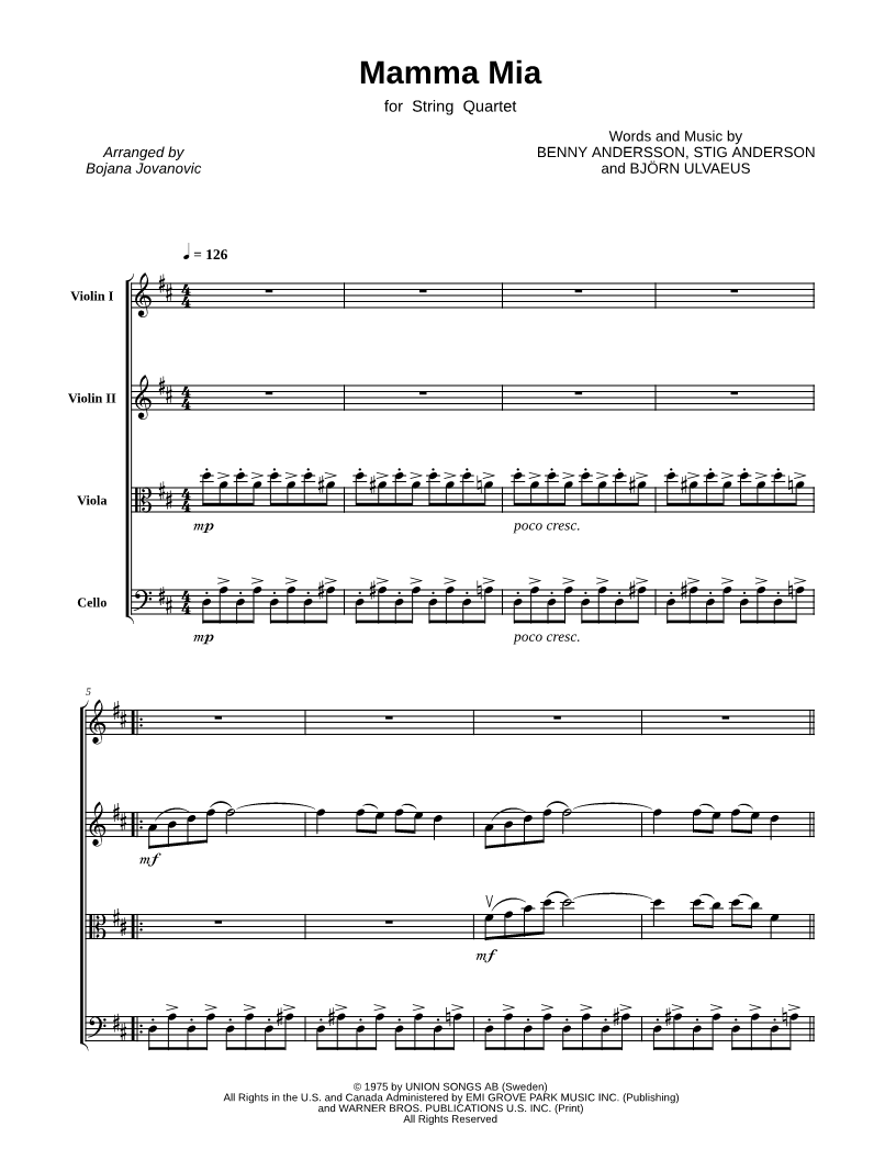 Score & Parts String Quartet |