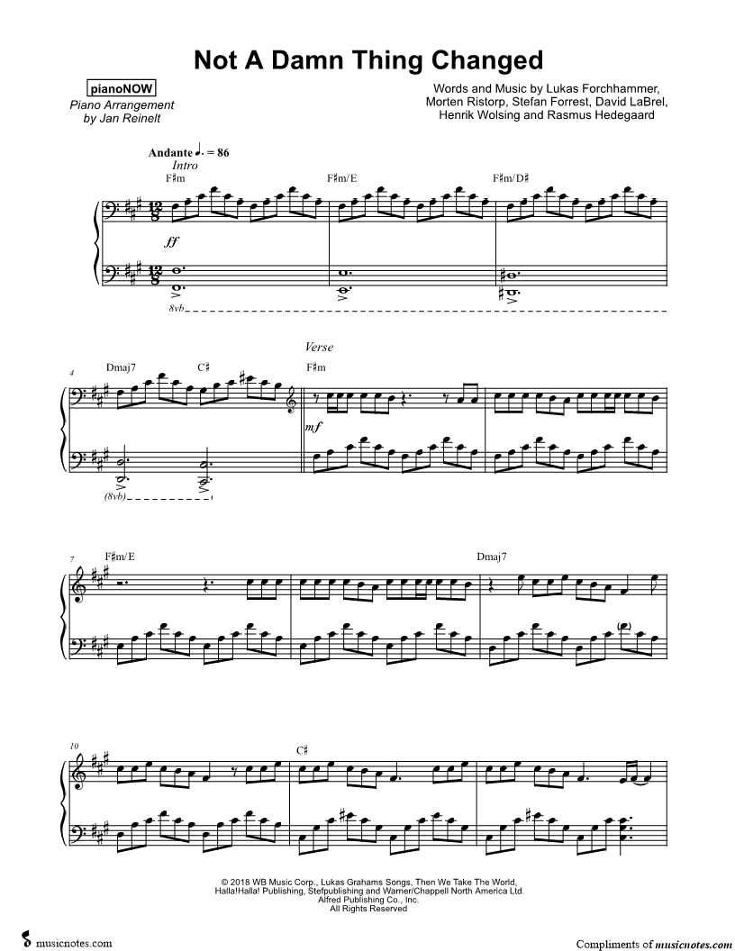 Many of the arrangements on Musicnotes have transpositions available, typically in C Major, as well as 3 sharps and 3 flats. If you do not see your desired key, you can request a transposition by reaching out to Customer Support.
