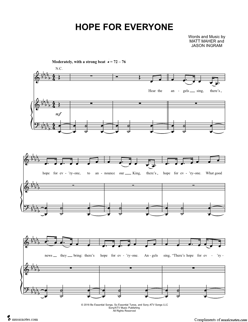 Hear the angels sing, there's hope for ev'ryone, to announce our King, there's hope for ev'ryone. |