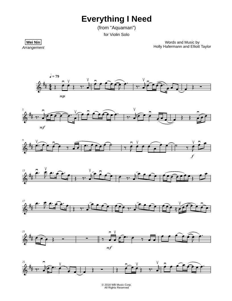 Violin, range: F#4-F#6 | |