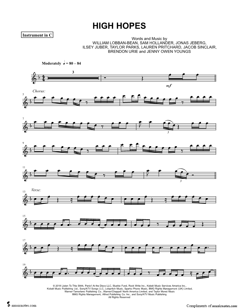High Hopes - C Instrument |
