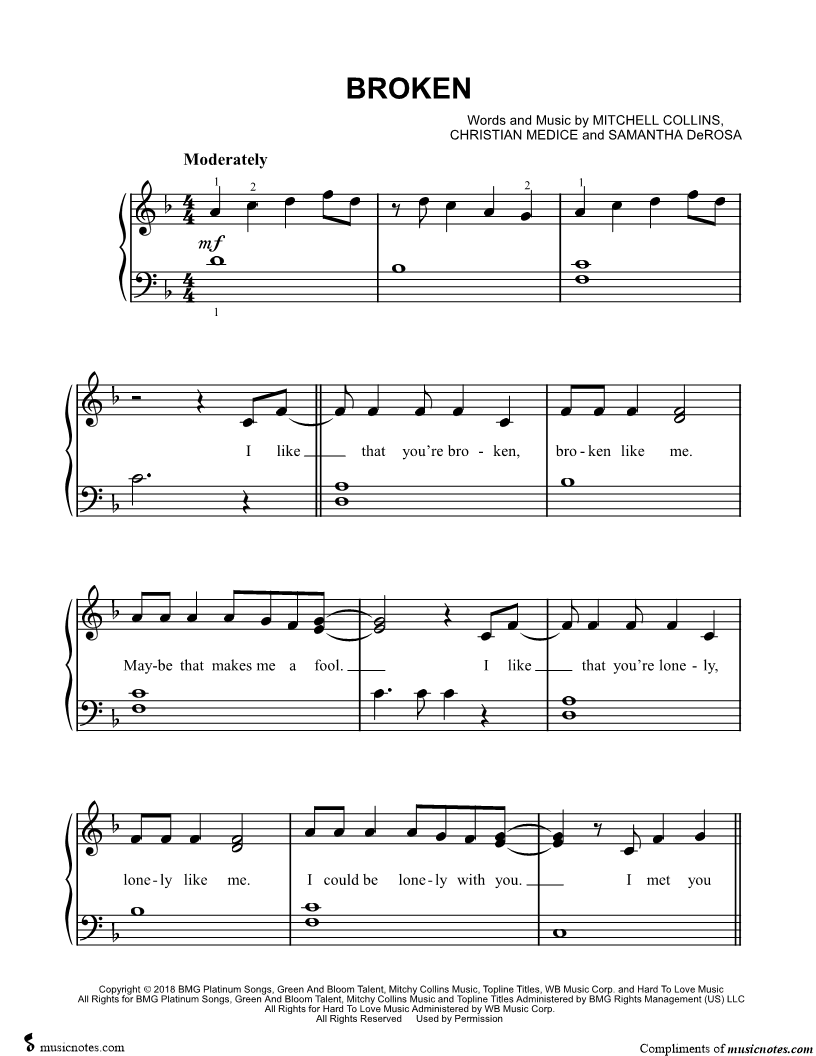 Musicnotes sells a wide variety of digital sheet music products including Singer Pros, Beginner Notes, Choral music, Piano Solos, Lead Sheets, Piano/Vocal/Guitar, Solo and Accompaniment, and fretted instrument tablature.