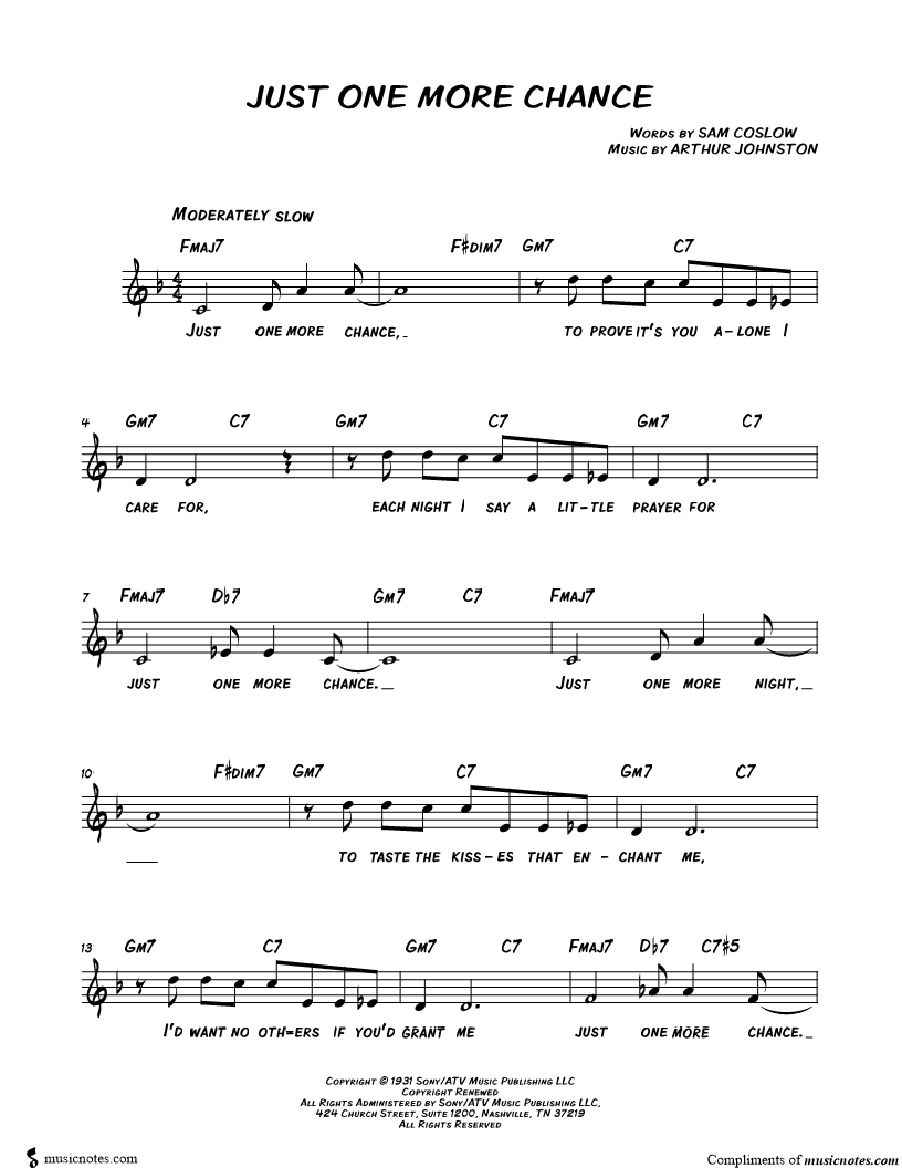 Just one more chance, to prove it's you alone I care for, each night I say a little prayer for just one more chance. |