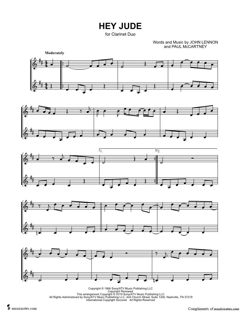 Hey Jude - Clarinet Duet |