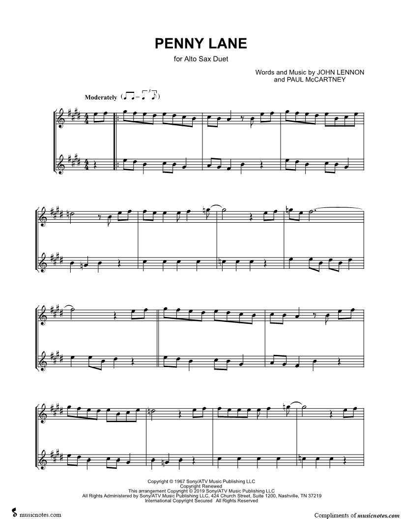 Penny Lane - Alto Saxophone Duet |