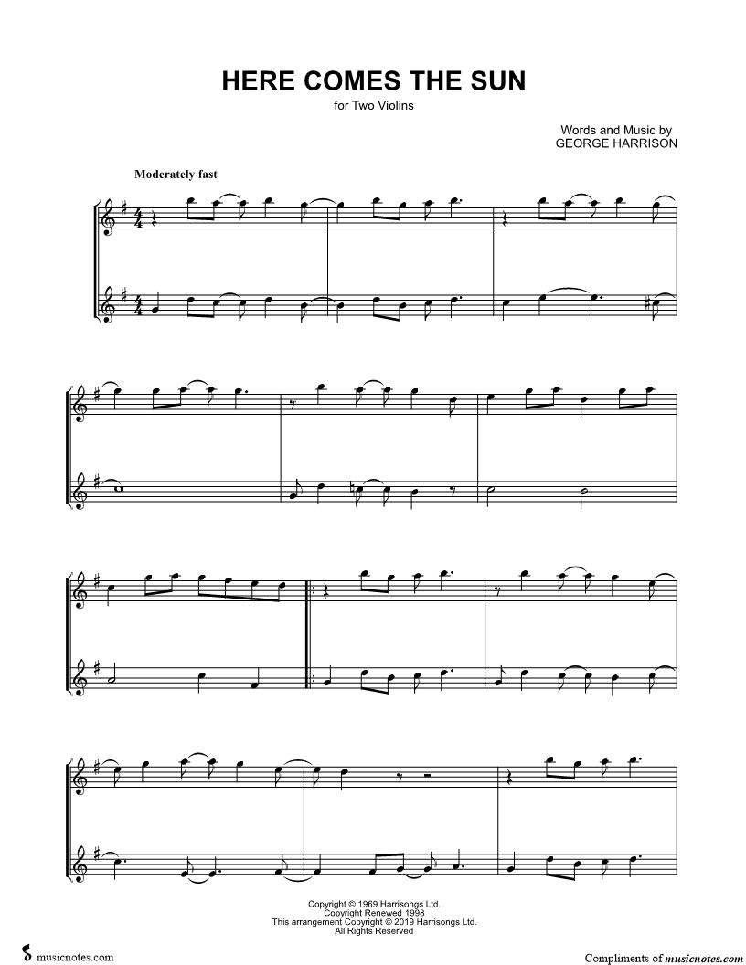 Here Comes the Sun - Violin Duet |
