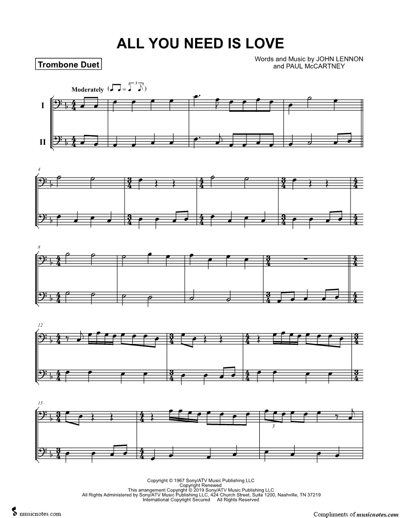 All You Need Is Love - Trombone Duet |