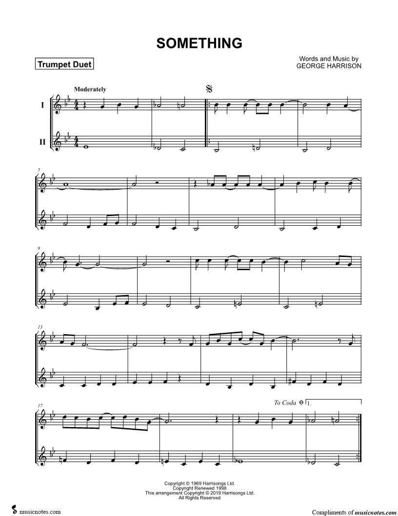 Trumpet 1, range: F4-F5 Trumpet 2, range: Bb3-Bb4 | |