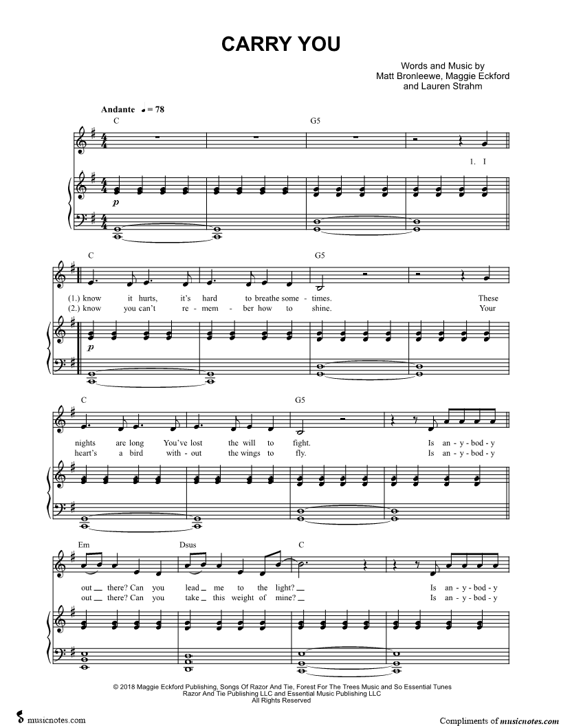 Many of the arrangements on Musicnotes have transpositions available, typically in C Major, as well as 3 sharps and 3 flats. If you do not see your desired key, you can request a transposition by reaching out to Customer Support.
