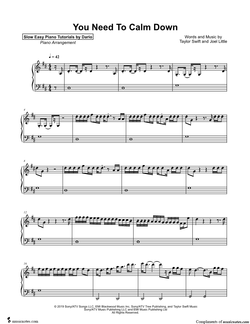 You Need to Calm Down [Slow Easy Piano Tutorial] |