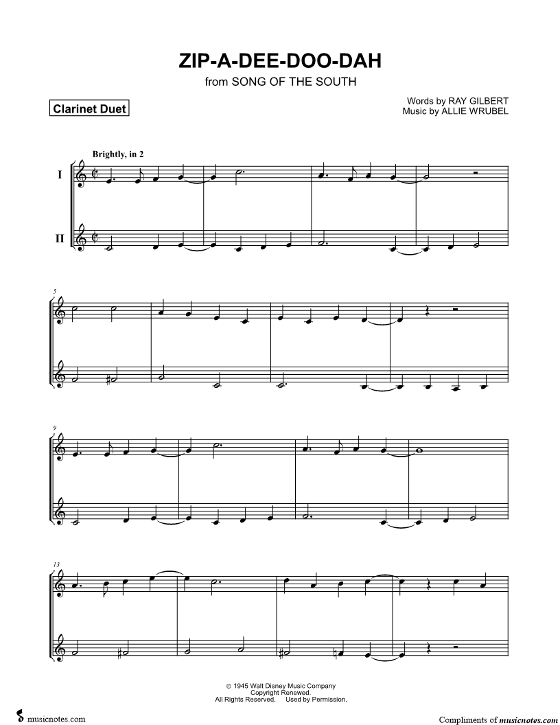 Zip-a-Dee-Doo-Dah - Clarinet Duet |
