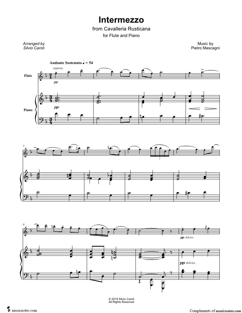 Intermezzo from Cavalleria Rusticana - Flute & Piano |