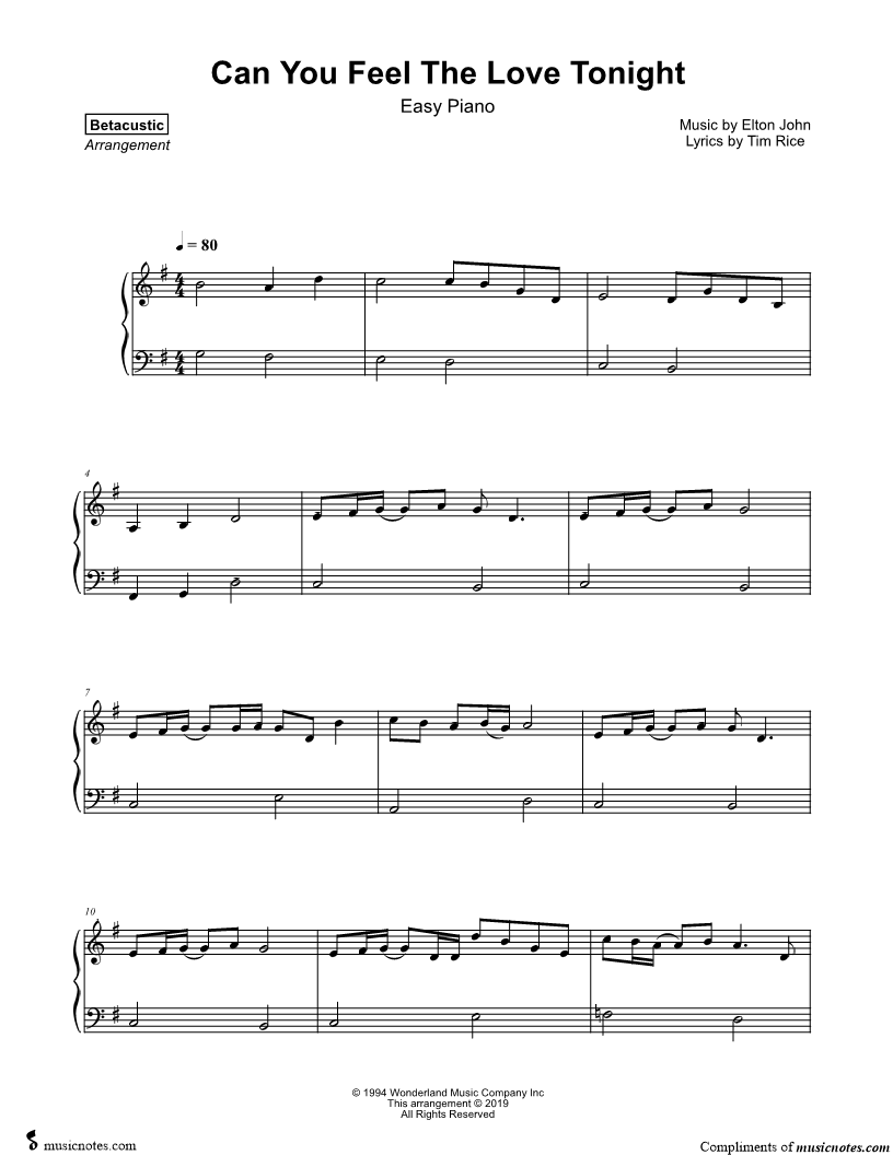 Can You Feel the Love Tonight [easy] |
