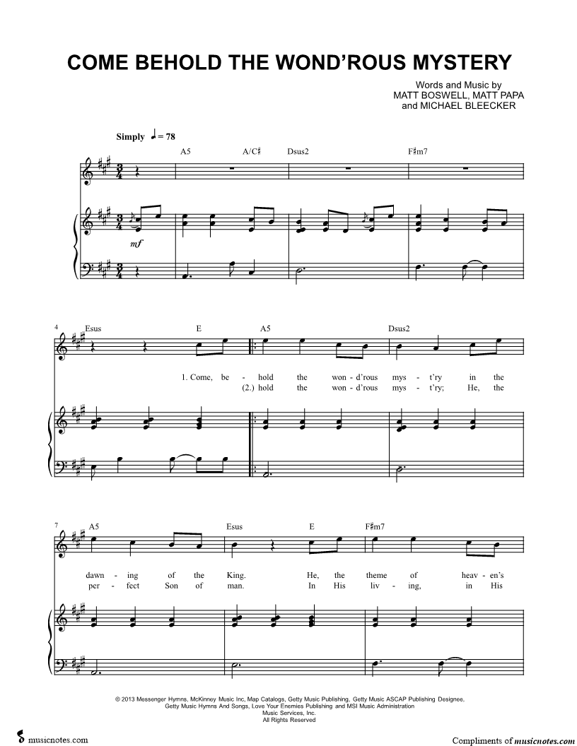 Come Behold the Wondrous Mystery |