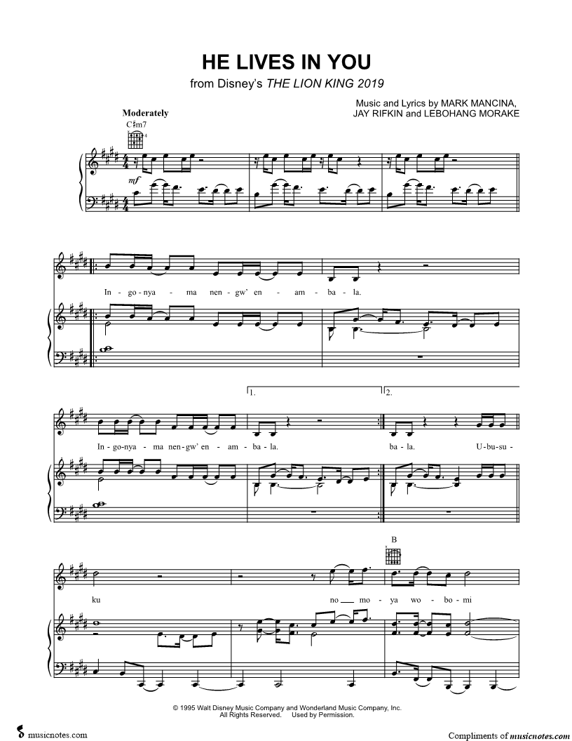 Musicnotes sells a wide variety of digital sheet music products including Singer Pros, Beginner Notes, Choral music, Piano Solos, Lead Sheets, Piano/Vocal/Guitar, Solo and Accompaniment, and fretted instrument tablature.