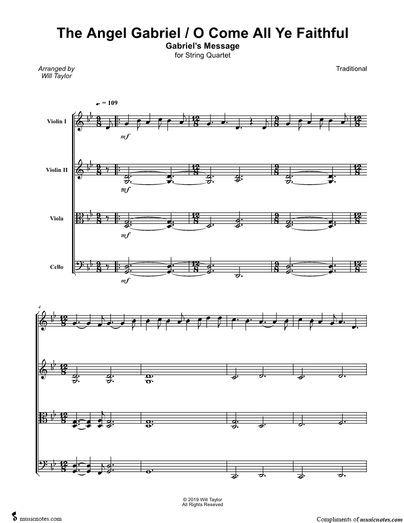 Violin 1, range: G3-D6 Violin 2, range: G3-G5 Viola, range: C3-D5 Cello, range: C2-C4 | |