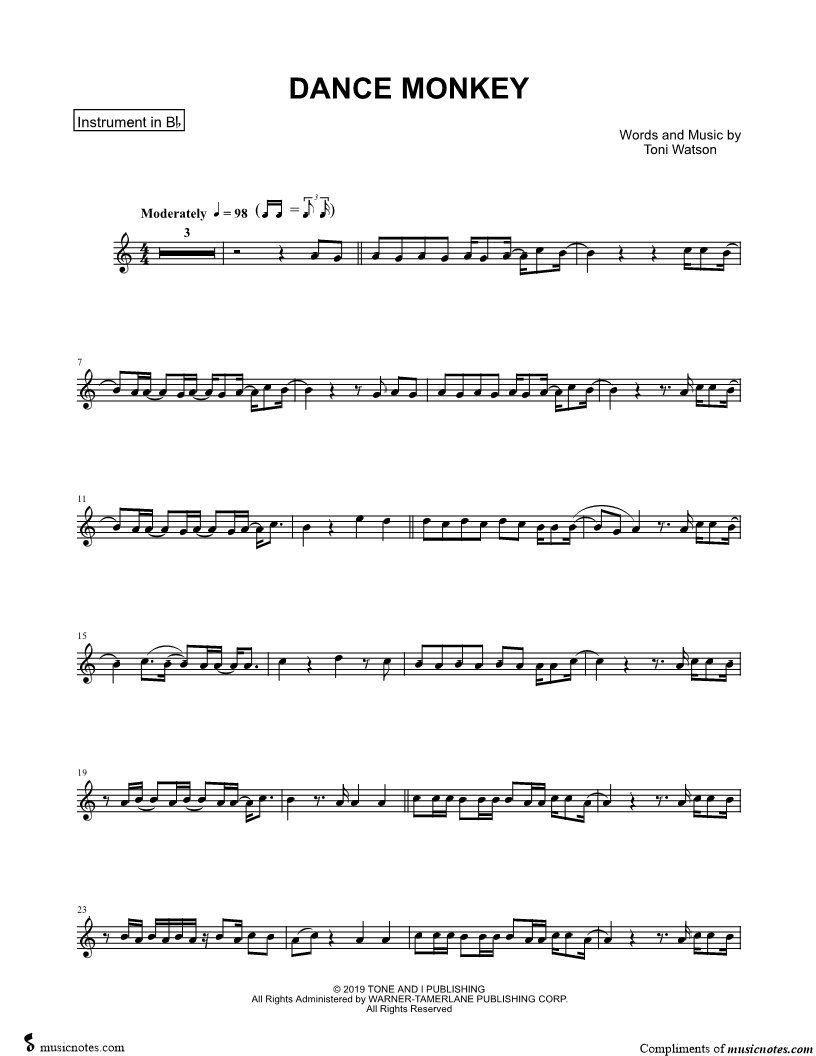 Bb Instrument, range: G4-E5 (Tenor Saxophone, Clarinet, Soprano Saxophone or Trumpet) | |